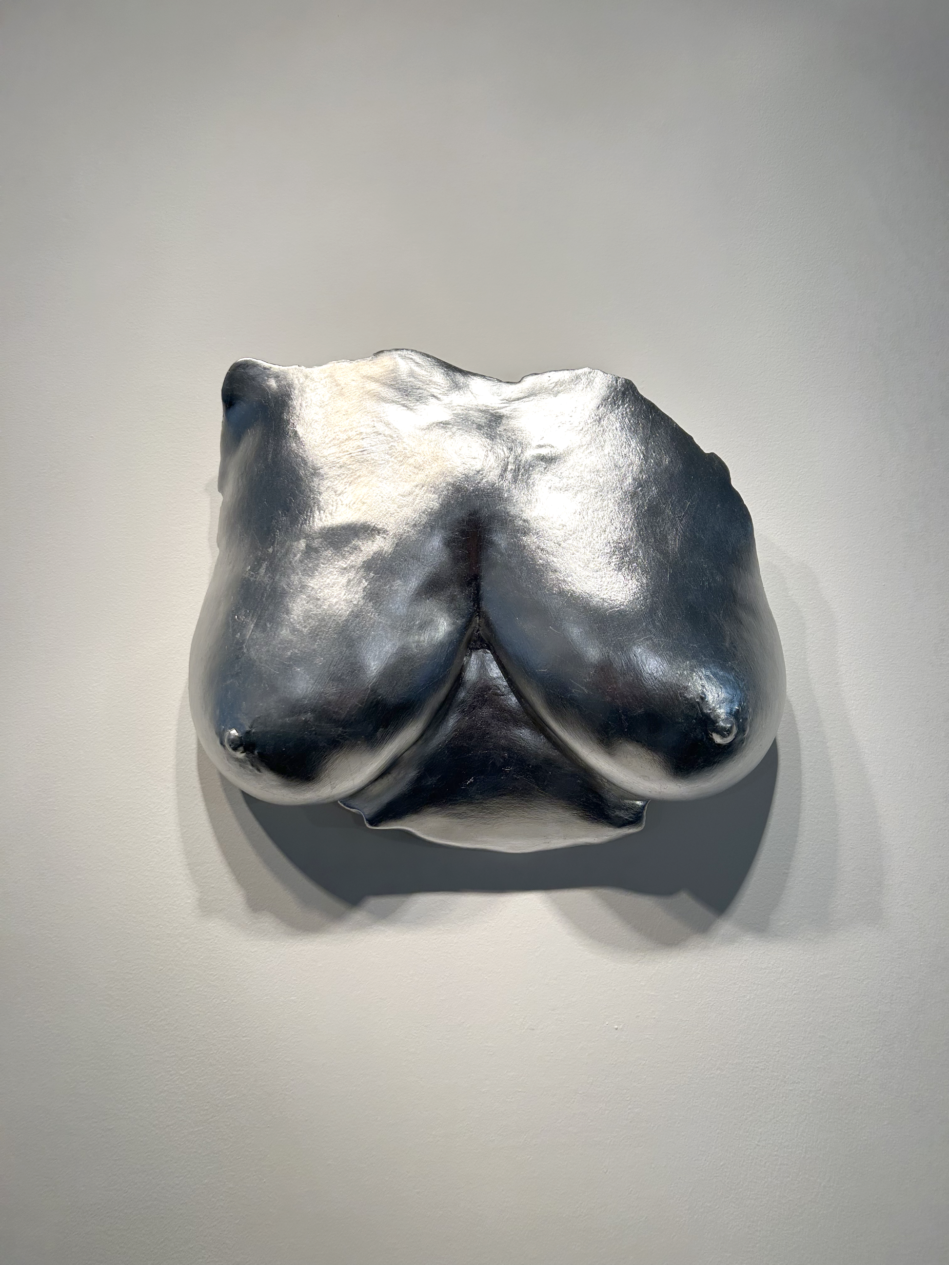 Breast Cast, 2025, silver leaf and mixed media, wall-mount system installed, commissioned work.
